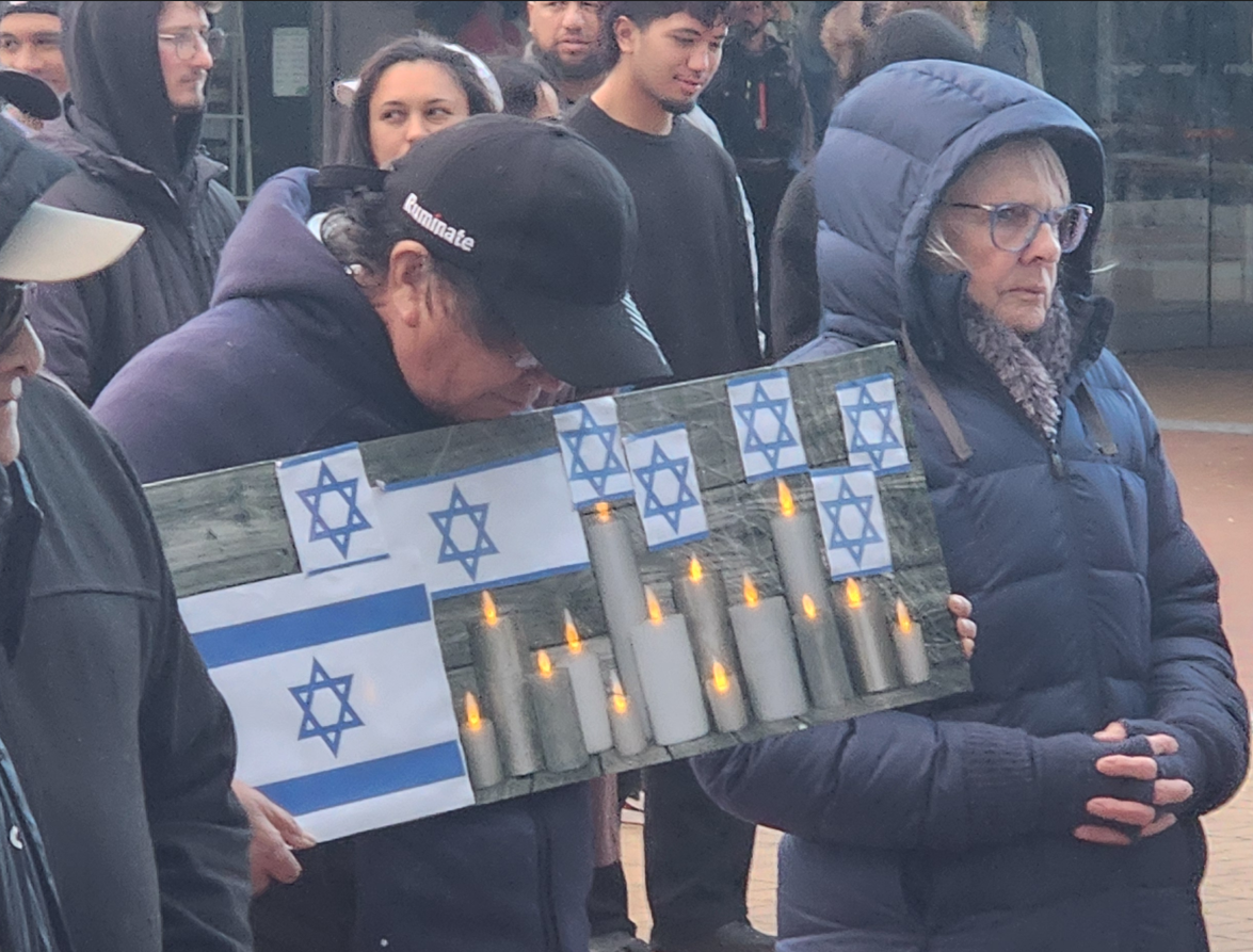 Up to 160 people gathered at the Hastings City Centre on Sunday afternoon to lift up publicly the plight of the Israeli hostages being cruelly